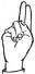 На ћирилици написано ИРИНА ЂУЛИНАЦ састоји се из 12 слова [?]. Исписано ћириличном једноручном азбуком за глувонеме: